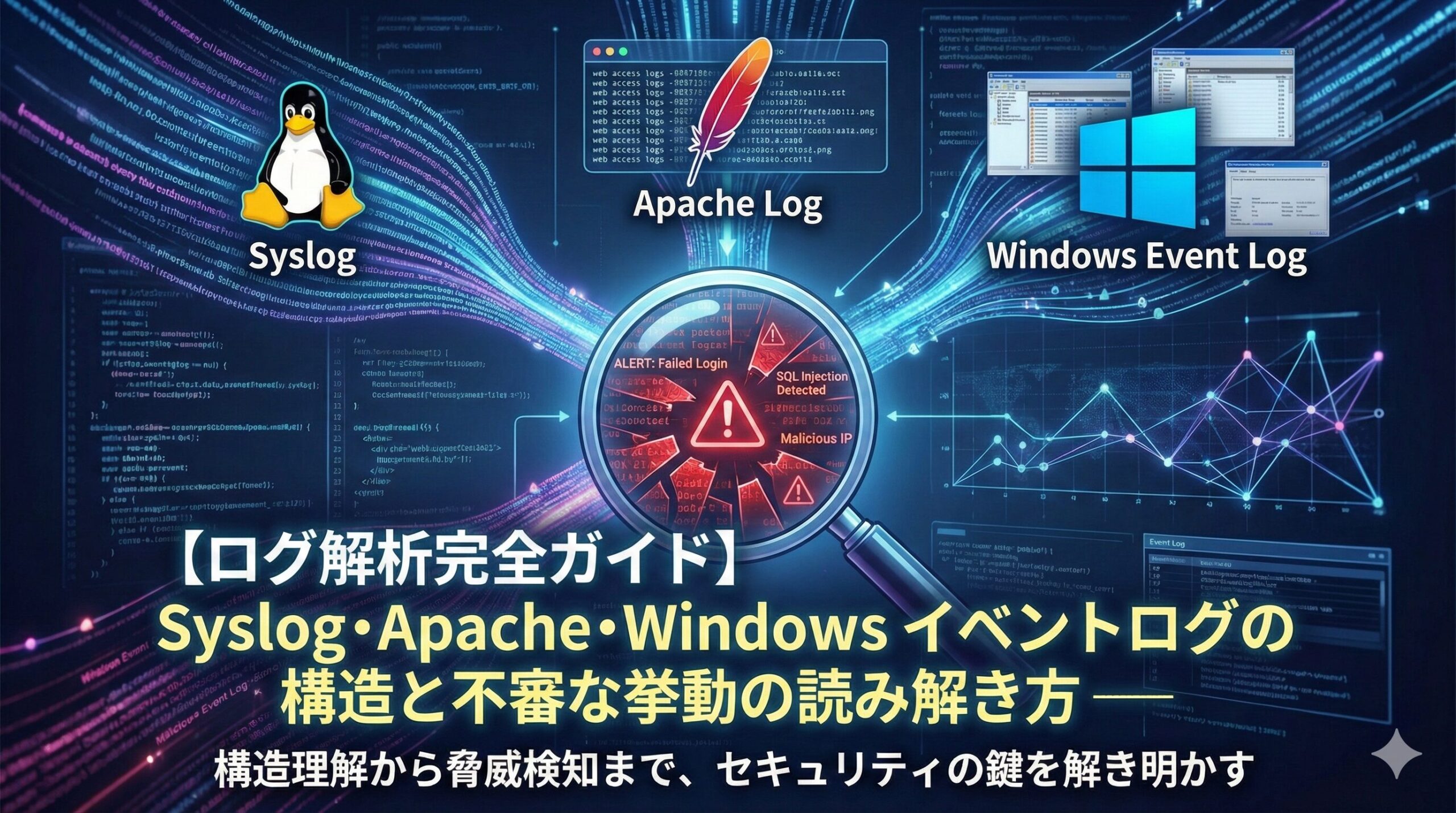 【ログ解析完全ガイド】Syslog・Apache・Windowsイベントログの構造と不審な挙動の読み解き方