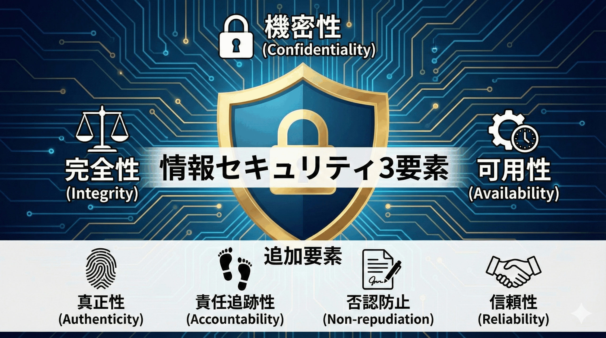 今日は、セキュリティの基本中の基本である「情報セキュリティの3要素(CIA)」と、近年重要度が増している「追加の4要素」について解説します。
