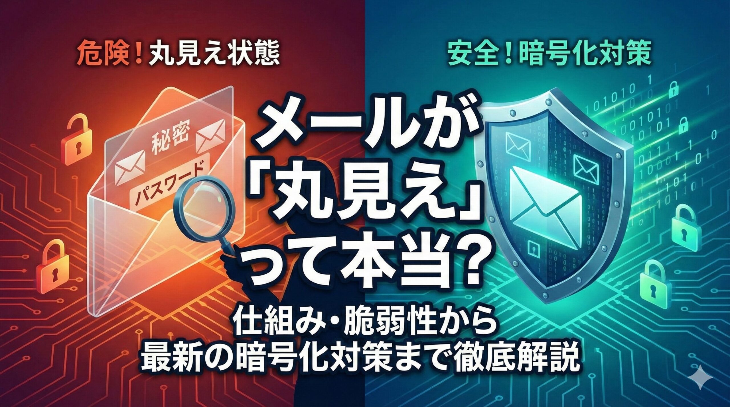 本記事では、図解を用いて電子メールの仕組み(SMTP、POP、IMAP)とその脆弱性を視覚的に解説し、さらにそれらを克服するための「暗号化技術(SMTPSなど)」や「認証技術(SMTP-AUTH)」について詳しく紹介します。