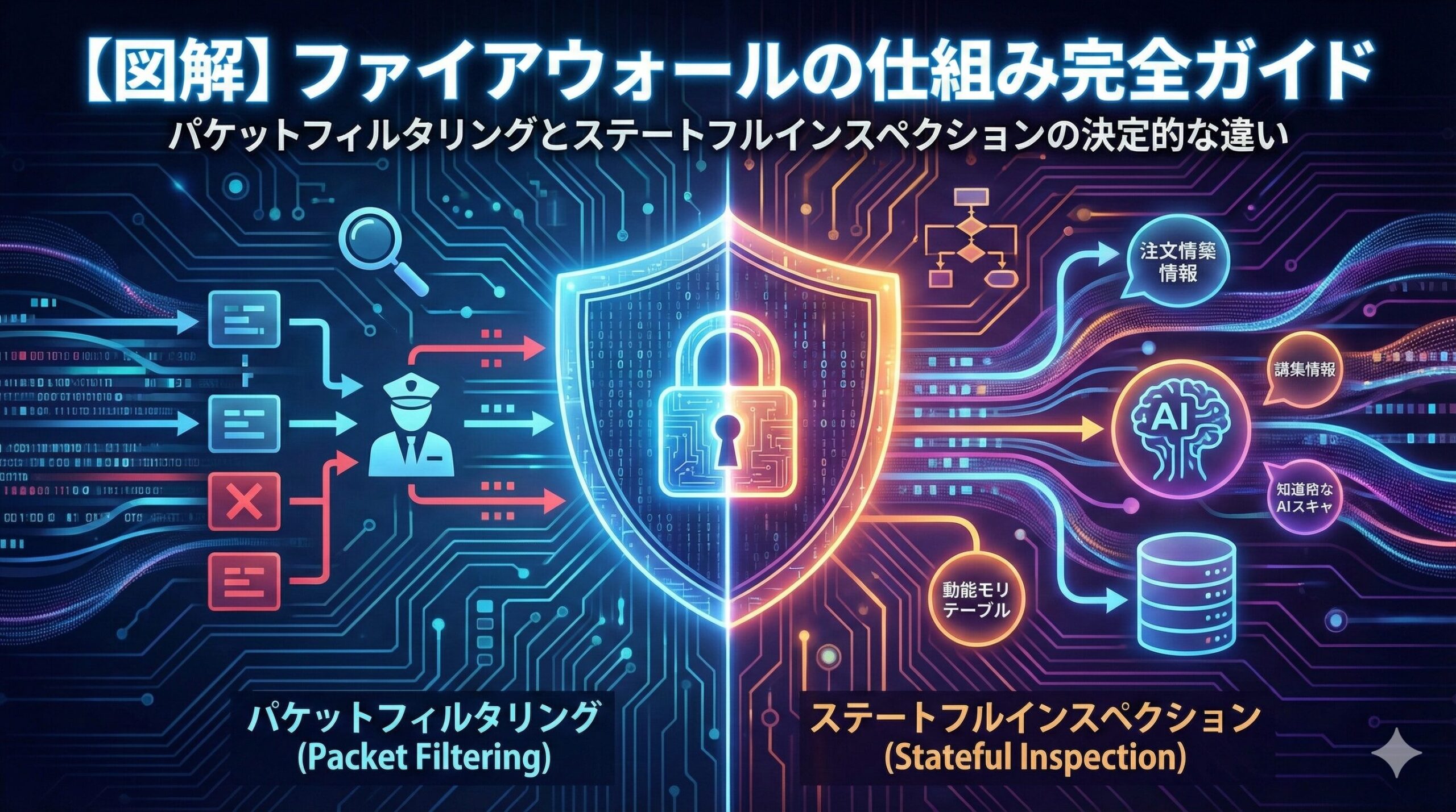 特に、歴史的な基本技術である「静的パケットフィルタリング」と、現在主流となっている「ステートフルインスペクション(動的パケットフィルタリング)」の違いを明確に理解することは、セキュリティエンジニアとしての基礎体力を決定づける重要なポイントです。この二つの挙動の違いを知ることは、TCP/IPという通信の仕組みそのものを理解することと同義だからです。