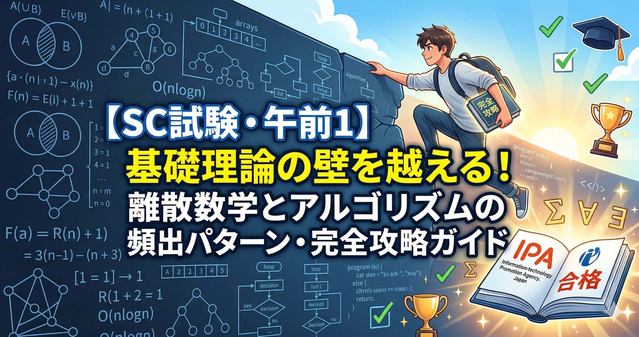 SC試験の午前1における基礎理論やアルゴリズム分野は、深く考え込む「思考」の領域ではありません。実務で手計算しないからこそ、決められたルールに従って手を動かす「作業」として割り切って処理することが、脳のスタミナを温存する最大のコツです。この記事では、私が講師時代に見てきた「初学者が陥りやすい罠」を交えながら、基礎理論の壁を最短ルートで突破するための戦略をオープンソースとして共有します。一緒に、この最初の難関をサクッと乗り越えていきましょう。