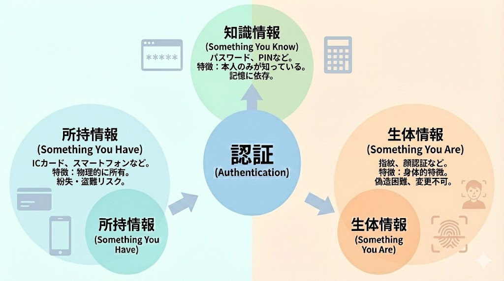 現代のセキュリティ理論では、認証要素は以下の3つに分類されます。