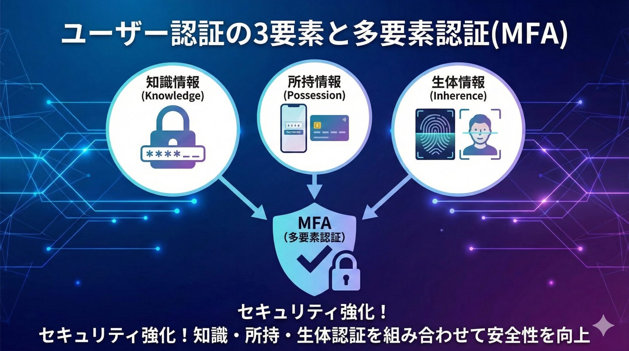 本記事では、ユーザー認証の根幹をなす3要素(知識・所持・生体)の詳細と、それらを組み合わせた多要素認証(MFA)の重要性について解説しました。